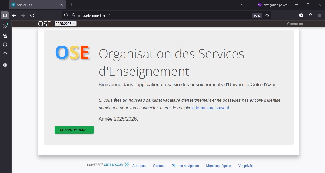Si vous êtes un nouveau vacataire d’enseignement, vous trouverez la procédure (ci-dessous) soit pour demander la création d’une identité numérique soit pour la réactiver :- Connectez-vous sur OSE :
