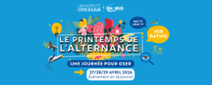 À partir du 5 mars 2026, Université Côte d'Azur lance une nouvelle édition du Printemps de l’Alternance, un temps fort dédié à la rencontre entre étudiants, recruteurs et formations.Tout au long du printemps, plusieurs salons de job dating seront organisés sur l’ensemble des campus de l’Université, offrant aux étudiants une opportunité privilégiée de construire leur avenir professionnel et de concrétiser leur projet . - 13 mars15 marsCréathon : 48H chrono pour donner un coup de boost à votre projet !
