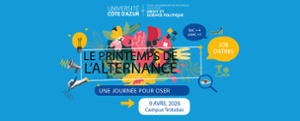 À partir du 5 mars 2026, Université Côte d'Azur lance une nouvelle édition du Printemps de l’Alternance, un temps fort dédié à la rencontre entre étudiants, recruteurs et formations.Tout au long du printemps, plusieurs salons de job dating seront organisés sur l’ensemble des campus de l’Université, offrant aux étudiants une opportunité privilégiée de construire leur avenir professionnel et de concrétiser leur projet . - 9 avr