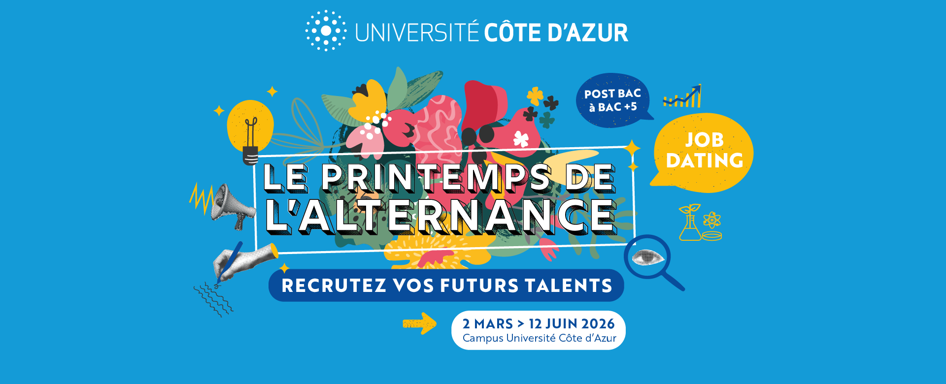 À partir du 5 mars 2026, Université Côte d'Azur lance une nouvelle édition du Printemps de l’Alternance, un temps fort dédié à la rencontre entre étudiants, recruteurs et formations.