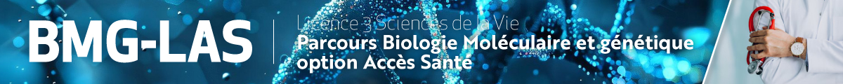 Le parcours BMG-LAS s'adresse aux étudiant(e)s qui souhaitent accéder aux études de santé et/ou s'orienter vers la recherche fondamentale ou appliquée dans les domaines de la génétique, biologie moléculaire et cellulaire et biologie du développement. Une ouverture sur les biotechnologies est aussi apportée. Il s’adresse aux étudiant(e)s ayant de bonnes connaissances en biochimie, biologie cellulaire et génétique.