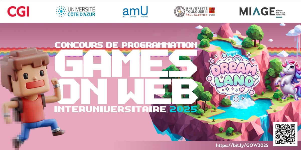 - Avant le 30 mars 2025 : constituez votre équipe (3 étudiant(e)s maximum) et inscrivez-vous ici https://bit.ly/GOW2025 - Vous recevrez une confirmation d'inscription sous 48h00.