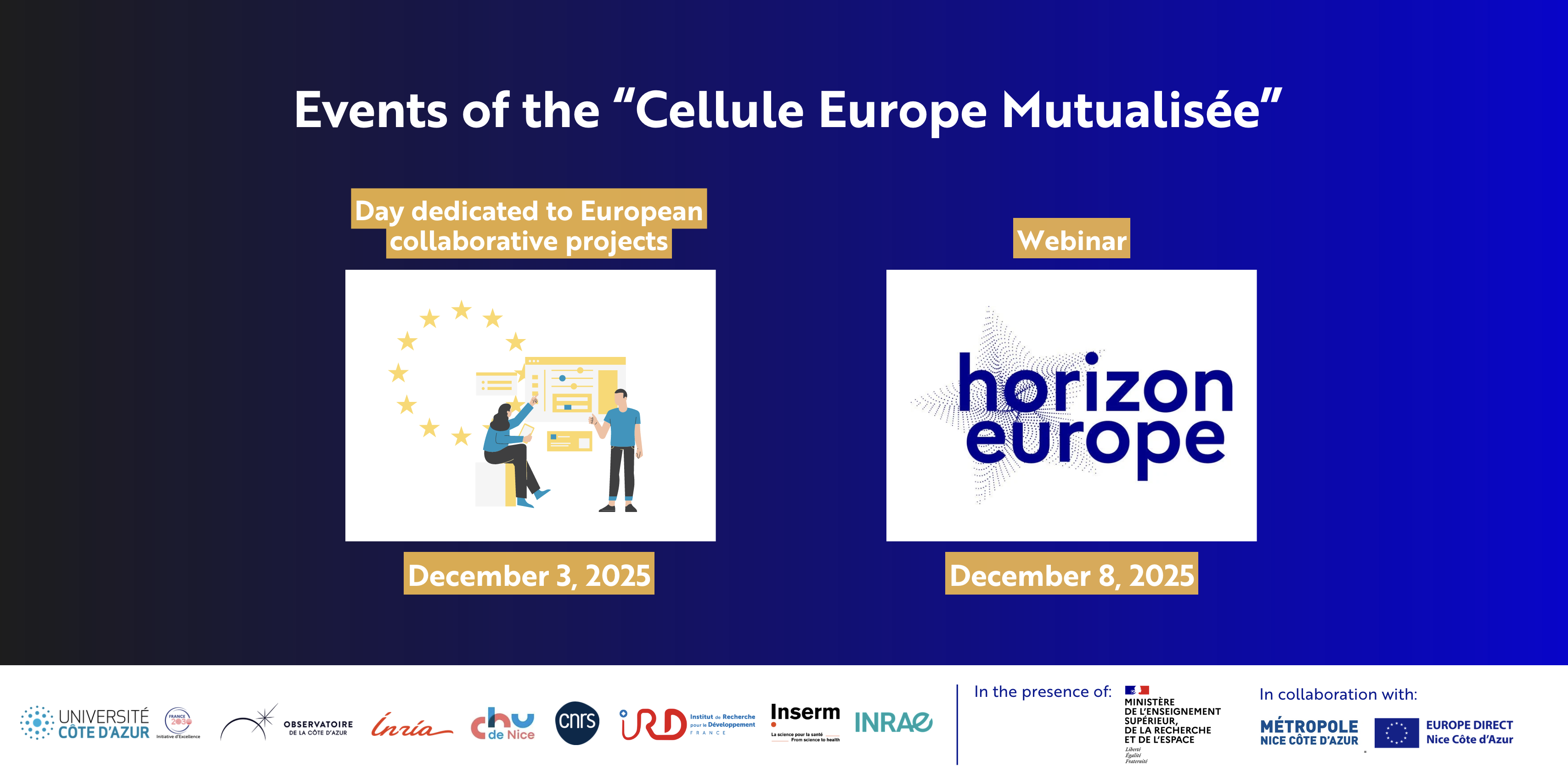 Join us on December 3 and 8 for two key events organized by the "Cellule Europe Mutualisée" (CEM): the Day dedicated to European collaborative projects and the Horizon Europe Webinar dedicated to the 2026 Horizon Europe call for proposals!