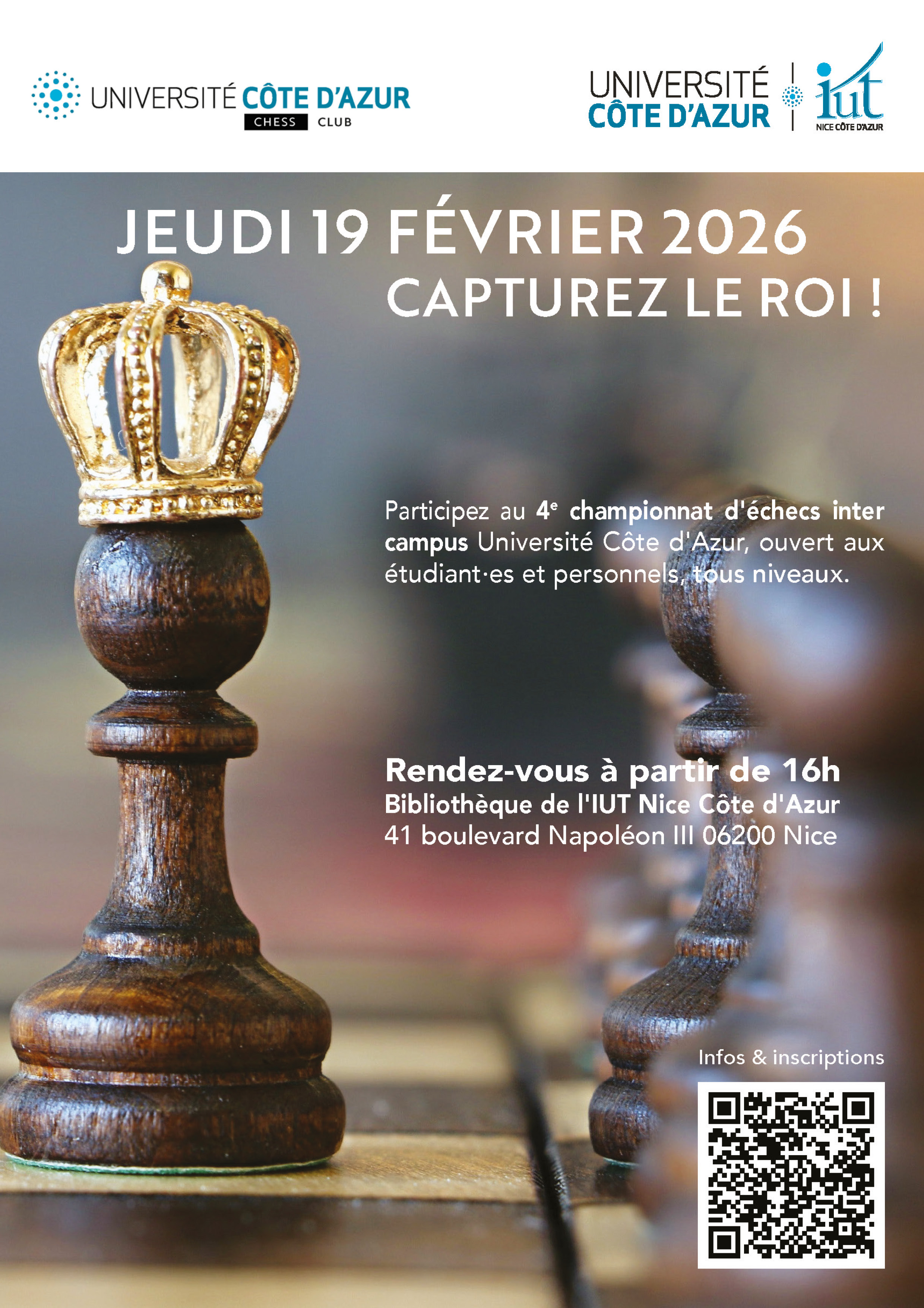 Créé en décembre 2019 dans le cadre de l'appel à projets "Clubs UCA" lancé par le bureau IDEX UCA Jedi , UniCA Chess Club s'adresse à vous tous, Etudiants et Personnels d'Université Côte d'Azur, désireux de découvrir l'un des plus anciens jeux de stratégie du monde.